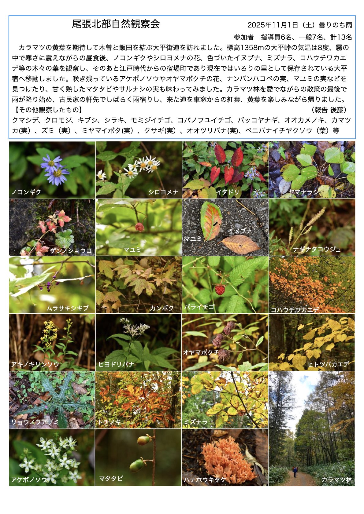 • 尾張北部 自然観察会(近隣各所)